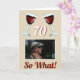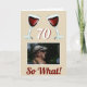 70 Så vilket Motivational Red Vin 70:e födelsedagskortet. Utformningen har två röda vin-glas, ett åldersnummer och ett anpassningsbar-foto - lägg till ditt foto. Text 70 Så vad är motivation, positivt och roligt, och är perfekt för en person med en känsla av humor. Du kan ändra åldersnumret med vilken annan ålder som helst. Underbar för en kvinna eller man som firar 70-årsdagen.