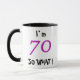 70, så vilken fantastisk inspiration 70:e födelsedagen Mugg. En underbar presentidé för en person som firar 70-årsdagen. Det kommer med ett lustigt och motiverande citat jag är 70 så vad och är perfekt för en person med en känsla av humor.