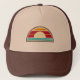 En hatt som presenterar ett halvt, cirklar den formade 70-tal inspirerade illustrationen av en strandsolnedgång. Sök efter att matcha objekt på Jills Paperie.