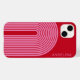 En boho-design med stripe mönster och cirkelformade former i rött och rosa. En fet men minimal design med valfritt område att lägga till text.