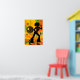 En livfull retroinspirerad konst med en dynamisk disco-dansares siluett vid sidan av en lysande discolampa. De djärva, utstrålande ränderna i varma 70-talsfärger skapar en energisk, groovy atmosfär som fångar andan från disco-eran. Perfekt för fans av vintage-estetik, danskultur och färgrik retro-väggkonst.
