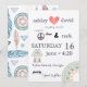 Letar du efter en retroinbjudan i 1970-talsstil till din bröllopsfest? Denna inbjudan förkroppsligar verkligen 1970-talstemat! Bohoelement och rolig text kommer att få dina gäster att känna sig riktigt groovy. Lägg till din egen text i denna design genom att använda rutorna "Redigera denna designmall" på höger sida om objektet, eller klicka på den blå knappen "Anpassa den" för att ändra textens arrangemang, typsnitt och färger, samt för att lägga till ytterligare information eller bilder i designen.