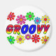 Vintage 70:s Mod Flower Power Design "Groovy" på t-shirts, mugg, nyckelringar, hattar, plattor, tote bags, porto, knappar...ljusblommor