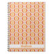 70s nostalgia notebook featuring groovy optical pattern in shades of orange. Perfect addition to your boho style vibe. See more 70s inspired gifts in my Groovy collection. Edit the text to add your own name or a phrase that inspires you.