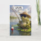 A frog wearing sunglasses and a straw hat sits on a lily pad in a lake, holding a fishing rod for a 70th birthday.