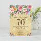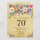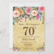 Inbjudan för födelsedag för guld- överrrakning för glitter blom- 70th för kvinnor. Blom- blomma för vattenfärg. Guld- glitterbakgrund. Rosor gult, orange, lilablomma. Vuxen födelsedag. 13th 15th 16th 18th 20th 21st 30th 40th 50th 60th 70th 80th 90:e 100., något åldras. Behaga klickar "skräddarsy den" knäppas och använder vårt designverktyg för att ändra denna mall för mer ytterligare customization.