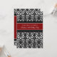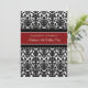 70th födelsedagsfest inbjudan för anpassningsbar i elegantt blom- damastast vintagemönster för röd svartvit klassiker. Tillfoga ditt namn, och partyet specificerar för en unik och stilfull födelsedagsfest inbjudan.