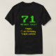 Den här nykterskjortan och den här roligten innehåller meddelandet "71 ÅRS GAMLA!", födelsedagsmeddelandet hälsning "Lycklig 71:a födelsedag" och ett anpassade namn. De övre åldersgränserna och texten har ett geeky, pixelformat, grönt, 8-bitars grafik stil-utseende som inspirerats av 80-talets 80-sekundersspel och 1980-talsspel. Det undre hälsning-budskapet har ett nervöst, gult, klassiskt digitalt datorinspirerat utseende. Sådana skepp kan bäras av gästerna på en födelsedagsfest som hålls i firande på 71-årsdagen av någon som har videospel eller vintage. [~Z0000455]