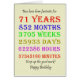 71:a födelsedagskortet som räknar ned år, dagar, månader, timmar och minuter. Ett kort till tankepaus i ge! Man har tagit hänsyn till läderåren!