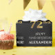Den lyxiga och elegant födelsedagskalans tema för omslutning av papper design innehåller budskapet "LYCKLIG 72:a BIRTHDAY,", ett redigerbart namn, och födelsedagsnumret "72:a" med ett faux/imitation guld inspirerat utseende mönster. Bakgrunden är svart på färgad. Papper som denna kan användas när man slår in presenter eller gåvor som ges i firande på någons 72-årsdag. [~Z0000454]