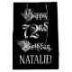 Denna lyxiga och enfärgade presentsäcksdesign med födelsedagstext ger budskapet "Lycklig 72:a födelsedag," i skript stil på svart färgad. Det har också en personlig som tar emot namn. En dylik presentpåse på födelsedagen kan användas när man ge en gåva eller present i firande på någons 72-årsdag. [~Z0000557]