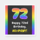 Den glatta och spännande födelsedagstexten med den pappra napkin-designen har nummer "72" med ett multifärgat regnbågsspektrum som inspirerat gradienten mönster, tillsammans med meddelandet "Lycklig 72:a födelsedagen" och en anpassningsbar mottagare av namn. Roligt pappra servetter av det här slaget kan användas när man är värd för party för någon i firande på 72:a födelsedagen. [~Z0000629]