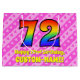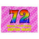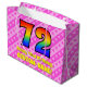 Den här roliga och festliga 72:a födelsedagskalematerade presentsäcksdesignen har ett stort nummer "72" med en mönster inspirerad av ett regnbågsspektrum. Det innehåller också budskapet "Lycklig 72:a födelsedag", följt av anpassadet namn. Bakgrunden har en ljus rosa och mörk rosa rand mönster som innehåller levande hjärtformer av rosa. Sådana presentsäckar kan användas när man slår in presenter eller ger gåvor till någon som firar sin sjuttioandra födelsedag. [~Z0000414]