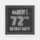 Denna 20-årsjubileum inspirerade till 72-sekundersfirande/papper napkindesign i party har en personlig namn, en finare art deco stil inspirerade till nummer "72:a", meddelandet "FÖDELSEDAGSFEST!" och ett gräns med flera linjer. Den har som standard en bakgrund med svart färgad, men kan anpassas till ett annat färg om så önskas. Pappra servetter som dessa kan användas vid en födelsedagsfest som hålls i firande på någons 72-årsdag. [~Z0000616]