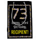 Den här blommigten, den botaniskt inspirerade presentväskan med födelsedagstext, innehåller meddelandet "Lycklig 73:e födelsedagen" och en anpassningsbar mottagare namn. Det stora antalet 73 plus gräns har båda blomsikonerna. En presentsäck som denna kan vara ett roligt sätt att fylla på en födelsedagspresent som ges till någon som firar sin sjuttiotredje födelsedag. [~Z0000653]