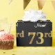 Den här sofistikerade, snyggt- och elegantens födelsedagskalematerade pappra designen har ett stort ordnummer "73:e" som har ett imitation/faux-liknande utseende, förutom hälsning-födelsedagstecknet "Lycklig 73:e födelsedagen" och ett redigerbart namn i ett skript-stil-teckensnitt. Bakgrunden är svart på färgad. Elegant som är papper som denna kan vara ett roligt sätt att fylla en födelsedagspresent eller gåva som ges till någon som firar sin sjuttiotredje födelsedag. [~Z0000515]