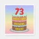 Den här trevliga och glatta födelsedagen med den pappra napkindesignen har en tecknad-stil-bild av en treskiktad födelsedagskalas med numeriskt formade ljus ovanpå som visar siffran "73", tillsammans med meddelandet "LYCKLIG 73RD BIRTHDAY," och en personlig mottagare av namn. Bakgrunden har en flerfärgad pastellfärgad regnbågsspektrum som inspirerar till gradienten mönster. Pappra servetter som dessa kan användas i en födelsedagsfest till någon som firar sin 73-årsdag. [~Z0000623]