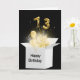 Guld-ballonger och mousserande ljusstrålar glöd i en vit låda på svart bakgrund under 73 år