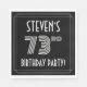 Denna 20-årsjubileum inspirerade 73-födelsedagsfesters papper napkin-design har ett anpassade namn, ett finare art deco-utseende inspirerat nummer "73:e", meddelandet "FÖDELSEDAGSFEST!" och ett gräns mönster som består av linjer. Den har som standard en bakgrund med svart färgad, men kan anpassas till ett annat färg om så önskas. Elegantens födelsedag kan sådana pappra servetter användas vid en party som firar någons 73-årsdag. [~Z0000616]