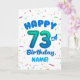 Celebrate their 73rd birthday with a bright, cheerful, and personalizable birthday card! This custom name birthday card features a bold number seventy-three balloon and colorful confetti.