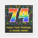 Den här roligten, den levande och färgstarka pappra napkindesignen på födelsedagen har ett stort nummer "74" med en regnbågsspektrumövertoning som inspirerade mönster. Det innehåller också budskapet "Lycklig 74:e födelsedag" och ett redigerbart namn. En del av bakgrunden har ett färglöst musik noter och symbolerna mönster. Roligt, anpassadets pappra blöjor av det här slaget kan användas vid en födelsedagskalender som hålls för att hedra en musiker, en sångare, en kompositör eller någon annans sjuttiofjärde födelsedag. [~Z0000421]