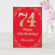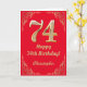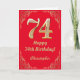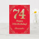 74:e födelsedag Röda och Guld Glitter Ram Kort