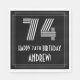 Den här roterande tjugoårsjubileet inspirerade den pappra napkindesignen med födelsedagstext, en stor Art Deco stil, inspirerad till nummer "74", meddelandet "LYCKLIG 74:e BIRTHDAY,", ett anpassade namn och en gräns mönster som består av linjer. Roligt, personlig födelsedag sådana pappra blöjor kan användas vid någons 74-årsfirande. [~Z0000395]