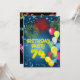 En roligt 74:e födelsedagsfest inbjudan med lycklig färg, ballonger och fyrverkerier. Se hela raden av inbjudningar och kort i min butik.