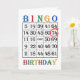 74:e födelsedagskortet. Säg Grattis på födelsedagen till en bingo-spelare med ett bingo-kort. Åldern är röd. En bingo-galen spelare kommer att få en enorm spark ur det här kortet! Copyright Norma Cornes.