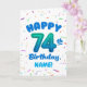 Celebrate their 74th birthday with a bright, cheerful, and personalizable birthday card! This custom name birthday card features a bold number seventy-four balloon and colorful confetti.