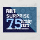 75 ÅR BLÅTT MÖNSTER Här är en trendig spara-datum-diagonal design med rolig bokstavsstil för en ÖVERRASKNINGS-födelsedagsfest. Modern och elegant! All text är helt anpassningsbar, så även lämplig för en 71 72 73 74 75 76 77 78 och 79 års födelsedag, eller något annat år du behöver.