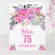Elegant 75-årsdagskort med rosa akvarell blomdesign. Personliggör med namn och text.