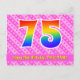 Framsidan av denna roliga, livliga och kärleksfulla födelsedagskortdesign har en stor siffra "75" med ett regnbågsspektrum-gradering-mönster. Den har också meddelandet "Grattis på 75-årsdagen" och ett anpassat mottagarnamn. Framsidan har dessutom ett glatt mörkt rosa och ljust rosa-randigt mönster med hjärtformer. Baksidan har ett anpassat födelsedagsmeddelande, eller kan eventuellt lämnas tomt om ett meddelande ska skrivas för hand istället. Ett födelsedagskort som detta kan vara ett roligt sätt att skicka födelsedagsönskningar till någon som firar sin sjuttiofemte födelsedag. Postkort som detta kan också användas för att inbjuda gäster till en födelsedagsfest som hålls för någon