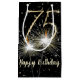 Guld sparkler på svart bakgrund med guld konetti för 75:e födelsedag. Bakgrunden till färg kan ändras. Text kan redigeras eller tas bort.