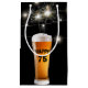 Party sparkler i ett kall glas öl med ljussträng mot svart bakgrund för 75:e födelsedag. Ålder kan ändras. Bakgrunden till färg kan ändras.