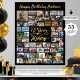 75:e födelsedag 55 fotokollage YEARS I SKAPAR Skriv ut. Fira en 75:e-födelsedag för honom eller henne med fotominnen genom åren med den här visningen tryckt på en poster utskrift med hjälp av denna lättladdade fotosamlingsmall med 55 kvadratiska och rektangulära bilder i olika storlekar med en återkalligrafi-manustypografi med titel 75 ÅR I SKAPAR, som innehåller deras födelseår i designen och din anpassningsbar i guld på din Val av bakgrundsbild färg (i svart). I stickprovet visas GRATTIS PÅ FÖDELSEDAGEN NAMN. Alternativ: Provet visas i en 24x30-tums storlek på Value Papper (Matte). Andra utskriftsstorlekar av standardtyp och anpassningsbar och papper kvalitet, Snabb digital nedladdningsfil för lokal utskrift eller överföring av designen till ett skum, banner, arbetsyta eller andra produktalternativ finns tillgängliga på beställningssidan. ÄNDRA TIPS: Välj Anpassningsbar Storlek för jämna gräns genom att ändra höjd och bredd proportionellt efter att du har klickat på ikonen UNLOCK (liknar en kedjelänk). ASSISTANS: Om du vill ha hjälp med designändringar eller anpassning, ändra storlek på eller överföra designen i färg, kontaktar du designern INNAN ORDERING sker via Chattan Zazzle MESSAGE eller e-post makeitaboutyoustore@gmail.com.