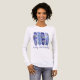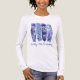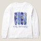 Fyra penseldrag med lila och blått lodrät skapar ett pulserande ram för blåvita och vita larksporblommor. Larkspur som också kallas delphinium är Julens födelsemånadsblomma. Penseldrag är en av de hetaste trenderna i mönster i somras. Med en textrad kan du anpassa din t-shirt. I fodral är det meningen att man ska fira födelsedag till bäran vid party.
