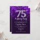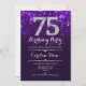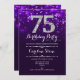 Inbjudan till 75:e på födelsedagen. Elegantens lila, vit design med faux glitter silver. Vuxens födelsedag. Har diamanter och skriptteckensnitt. manar eller kvinnor på inbjudan. Perfekt för en snyggt födelsedagsfest. Berätta om du behöver anpassa dig ytterligare.