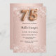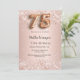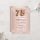 En modern, snyggt och glamorös inbjudan till en 75:e-födelsedagsfest. Ro guld med konetti.namn är skrivet med ett handskript i stil. Anpassa och lägg till information om party. Nummer 75 är skript med stil som ballong.