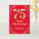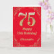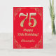 75:e-födelsedag Röd och Guld Glitter Ram Kort