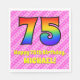 Den pappra napkindesignen med uppgången och lycklig 75:e-födelsedag har ett stort nummer "75" med en färgstark mönster inspirerad av ett regnbågsspektrum. Det innehåller också budskapet "Lycklig 75:e födelsedag" och ett anpassade namn. Bakgrunden har en rosa i mörk och ett mönster i ljusa rosa rand som innehåller levande hjärtformer i rosa. På födelsedagen kan pappra blöjor som denna användas vid ett party som firar någons sjuttiofemte födelsedag. [~Z0000417]