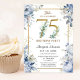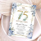 75:e Födelsedagsfest Elegant Dusty Blue-Blommigt Inbjudningar