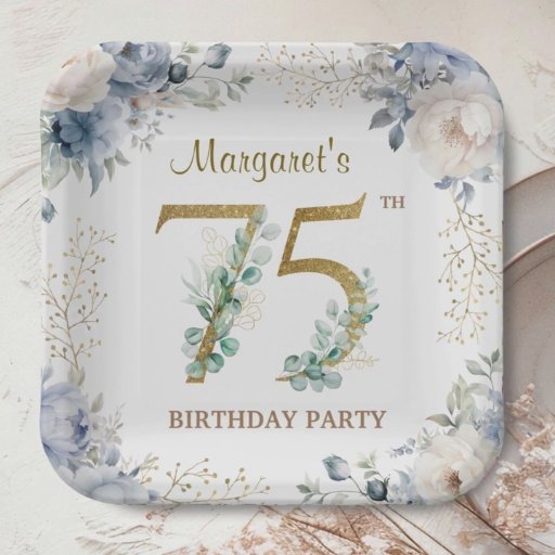 75th Birthday Elegant Gold & Dusty Blue PeonyDesignad av H-Art Studio Design