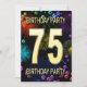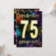 Lägg till ett namn för att anpassa den här unika partsinbjudan. 75:e födelsedagsfest inbjudan med fyrverkerier och bubblor. Lägg till dina uppgifter inuti för att skapa en perfekt roligt inbjudan. Ljusa upp himlar med dessa vackra fyrverkerier. En inbjudan till en födelsedagsfest som har stil och massor av roligt.