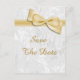 Kvinnors elegant 75:e Födelsedagsfest sparar datumvykorten. Kvinnans sjuttiofemte födelsedagsfest sparar datumkorten. Vacker vit dammmönsterbakgrund med blomning och vridning med en söt, snyggt romantisk guld- och ribbonbild. Dessa glamorösa, chic, klassade, datumkort är vackert sofistikerade och dekoreras/skrivs ut på båda sidor. OBSERVERA: Alla produkter på Zazzle har platt tryckt bilder. Bow och ribbon bilder som köpts från digital design för elena. Om du behöver hjälp med att anpassa din produkt kontaktar du mig genom min butik och jag kommer att vara lycklig för att hjälpa till. Jag har också andra matchande produkter i min butik.