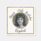 This pretty white and gold 75th birthday napkin includes a customizable photo with a gold border, and will set a fun and celebratory tone. Note: The foil border is printed and not actual shiny foil!