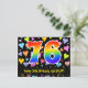 Framsidan av denna kärleksfulla, färgglada och spännande födelsedagsteman postkortsdesign har ett stort nummer "76" med ett regnbågsspektrum-gradering inspirerat mönster. Den har också meddelandet "Grattis på 76-årsdagen," och ett personligt mottagarnamn. Framsidan har dessutom ett livfullt och färgglatt kärleksfullt hjärtbakgrundsmönster. Baksidan har ett redigerbart födelsedagsgratulationsmeddelande, eller skulle kunna rensas och lämnas tom om ett meddelande ska skrivas för hand istället. Ett personligt födelsedagskort som detta kan vara ett roligt sätt att uppmärksamma någon på deras sjuttiosjätte födelsedag. Postkort som detta kan också användas för att inbjuda gäster till en födelsedagsfest som håll