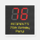 Den här pappra napkin-designen för geeky och roligt har ett stort nummer "76" med ett rött digitalt visning med sju segment som inspirerats av utseendet, tillsammans med en personlig namn och meddelandet "76:e Födelsedagsfesten!" i gul gult, på svart färgad. Roligt, anpassad födelsedagskalender som pappra blöjor kan användas vid någons 76-årsfirande. [~Z0000388]