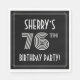Denna lyxiga sjuttiosjätte födelsedagskalender/den pappra napkindesignen i party har ett anpassade namn, ett finare art deco-utseende inspirerat nummer "76:e", budskapet "FÖDELSEDAGSFEST!" och ett gräns mönster som består av linjer. Den har som standard en bakgrund med svart färgad, men kan anpassas till ett annat färg om så önskas. Snyggtens födelsedag kan sådana pappra servetter användas vid en födelsedagsfest i firande på någons 76-årsdag. [~Z0000616]