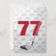 Närbild av vit golfbollsmönster med en golfklubba för en 77-årsdag.